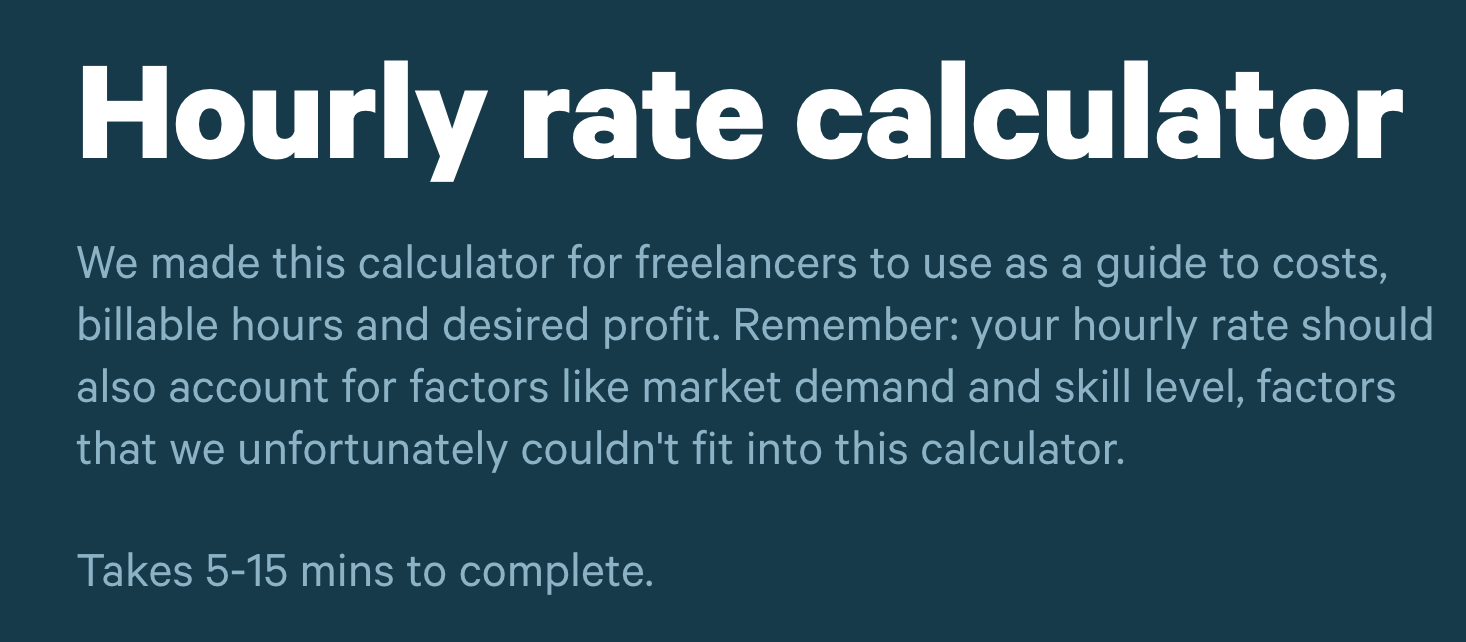 This company created a "Hourly rate calculator," which is ideal because their customers are freelancers & agencies.