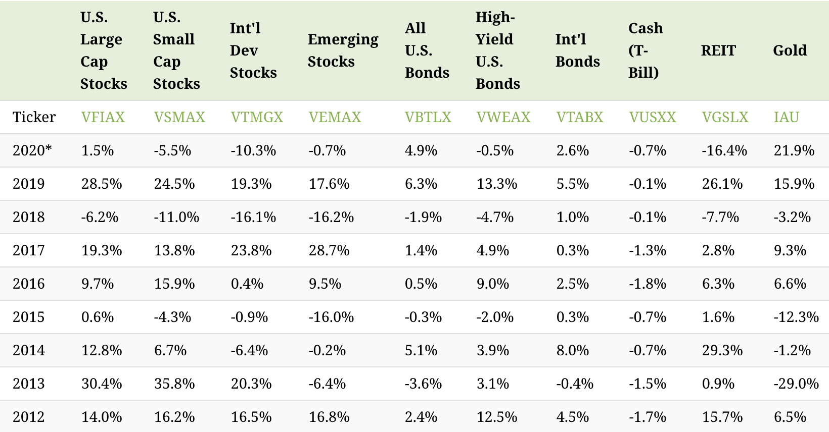 You could use comparison charts to directly compare your product with competitors, or you could use less direct comparisons. For example, this table compares investment returns of different asset classes: